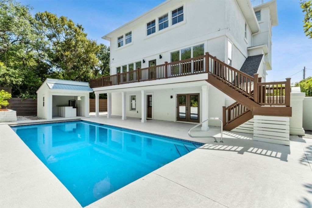 Meticulously improved and move-in ready, this coastal retreat is ideally located just steps from the beach on beautiful Amelia Island. Boasting breathtaking ocean views and nearly 5,700 square feet of luxury living space, this expansive home is a rare offering in both size and design. Every inch of the property has been thoughtfully updated, blending contemporary finishes with timeless coastal charm. The standout air-conditioned belvedere offers sweeping views of the Atlantic Ocean?perfect for morning coffee or sunset cocktails. Ideal for multigenerational living or hosting guests, the downstairs guest quarters include a full-size living room and a complete kitchen, offering comfort and flexibility rarely found in beachside homes. The home features an elevator providing access to all levels, along with two laundry areas?one on the third floor near the primary bedrooms, and another on the ground level for added convenience. The oversized, climate-controlled garage offers ample space not only for two vehicles, but also for golf carts, beach gear, and storage, enhancing the homes impressive functionality. Designed for both relaxation and entertaining, the gated backyard is a private oasis complete with a saltwater pool, covered cabana bar, and generous space for hosting after sun-soaked beach days.